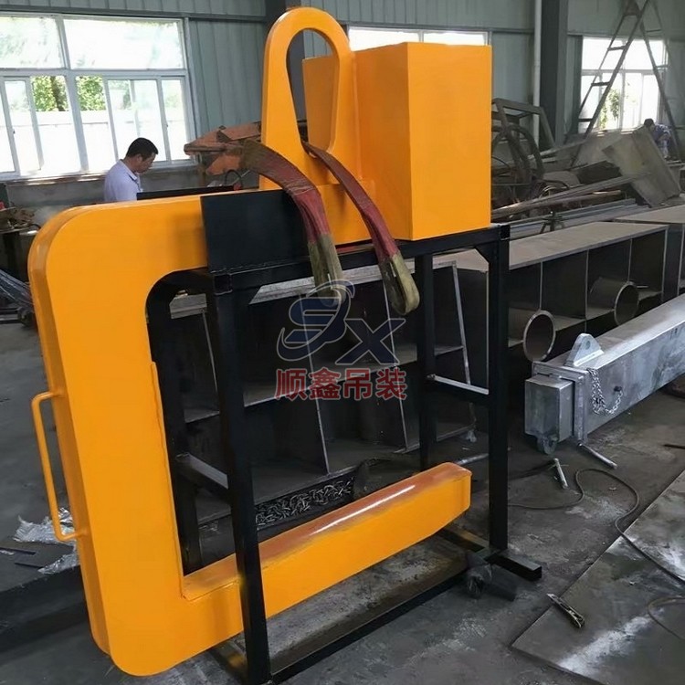 翻轉吊具通過機械剪力原理,對立式擺放的卷鋼進行單邊抓取,來完成卷鋼的裝卸,當改變重力點時,可以對卷鋼進行翻轉,作業(yè)時不傷鋼卷。其吊耳采用加厚處理,焊縫飽滿牢固、延長使用壽命。